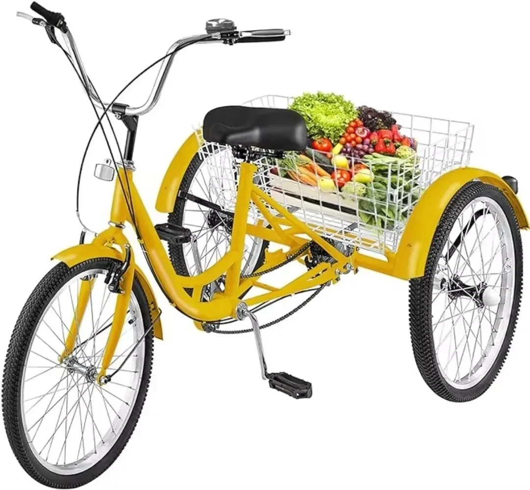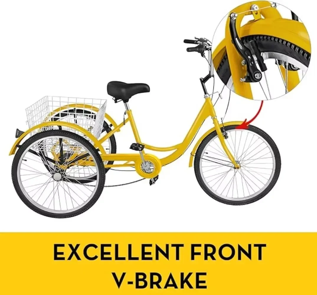 - Durable and Sturdy—24 inch single 3 wheel bike, Hi-tensile steel frame with stylish color, load capacity: 150 kg(330 lbs), safe, easy and convenient in use