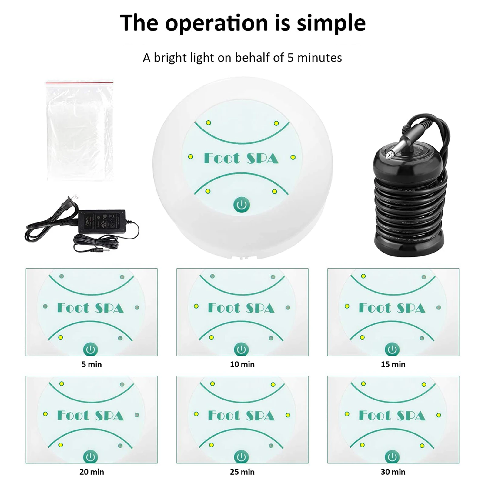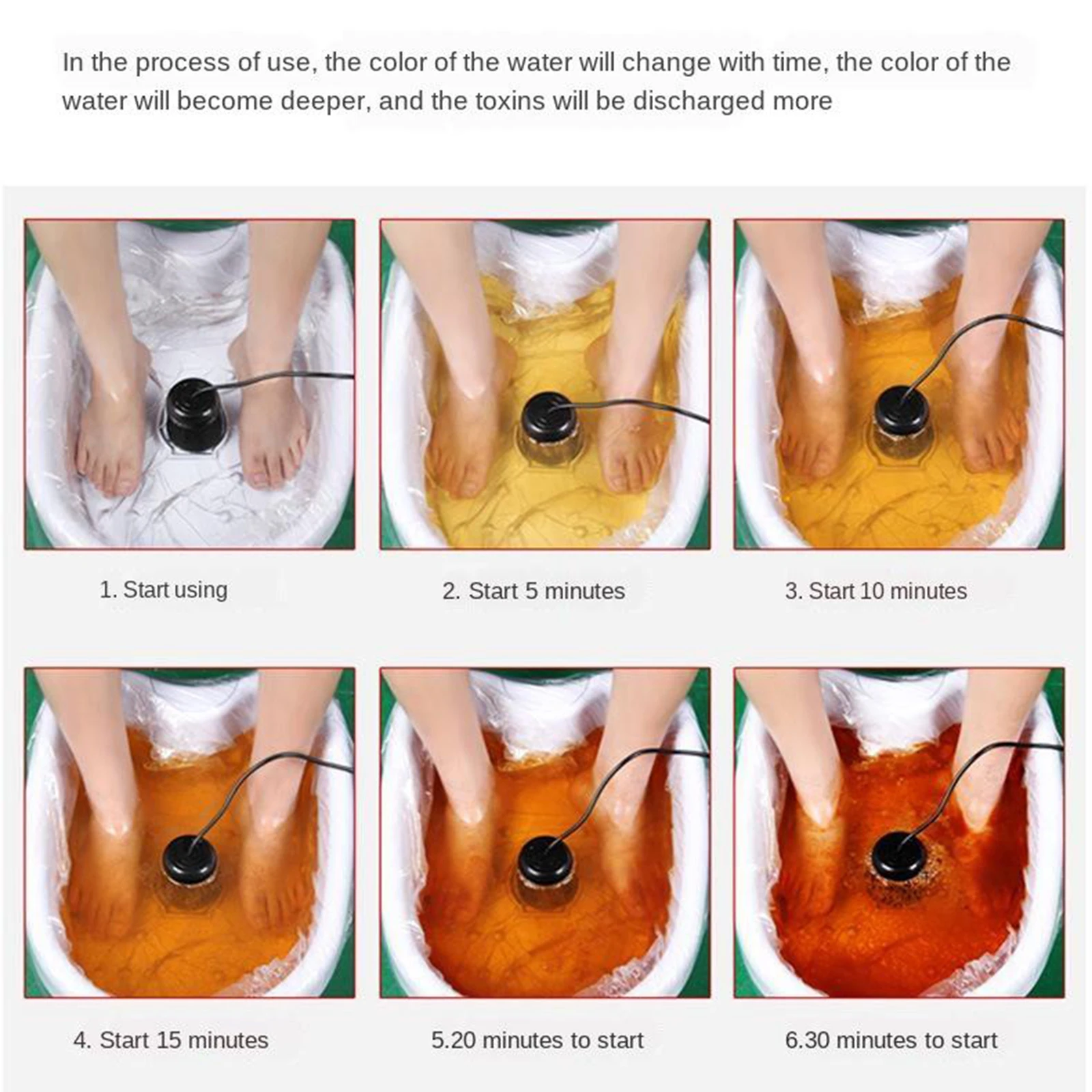 Safe and Easy To Use – purely water re tion without any side effect and toxic substance, give you total body purification. Really easy to use, just connect to power, press the power button on the controller for 2 times, put the array and your feet into water with a little salt, the m hine will work