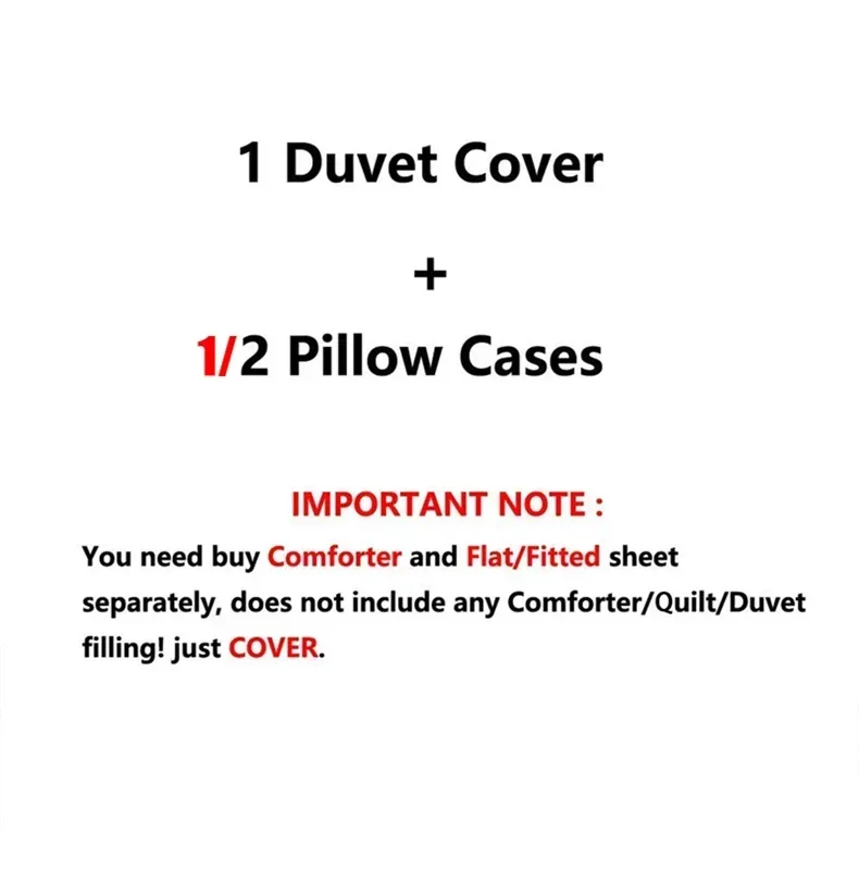 US Full: 1 × Duvet Cover(200*230cm) + 2 × Pillow Case(50*75cm)