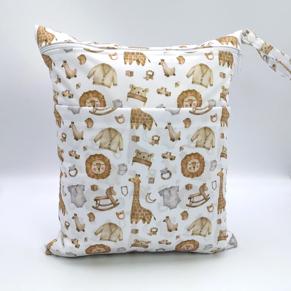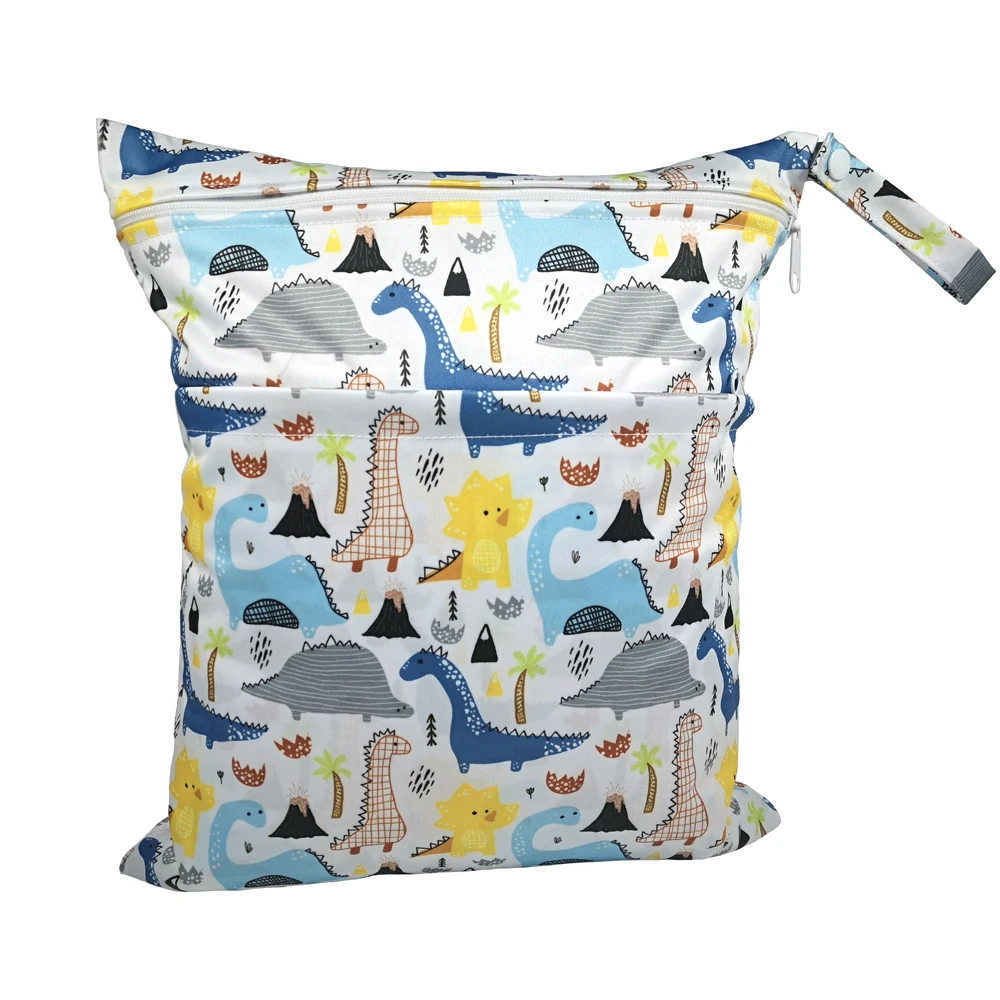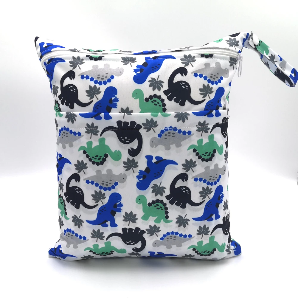 New pattern diaper bags waterproof and moisture proof double zipper design dry wet separation baby carrier bags