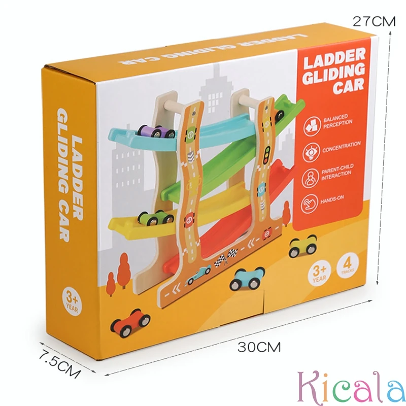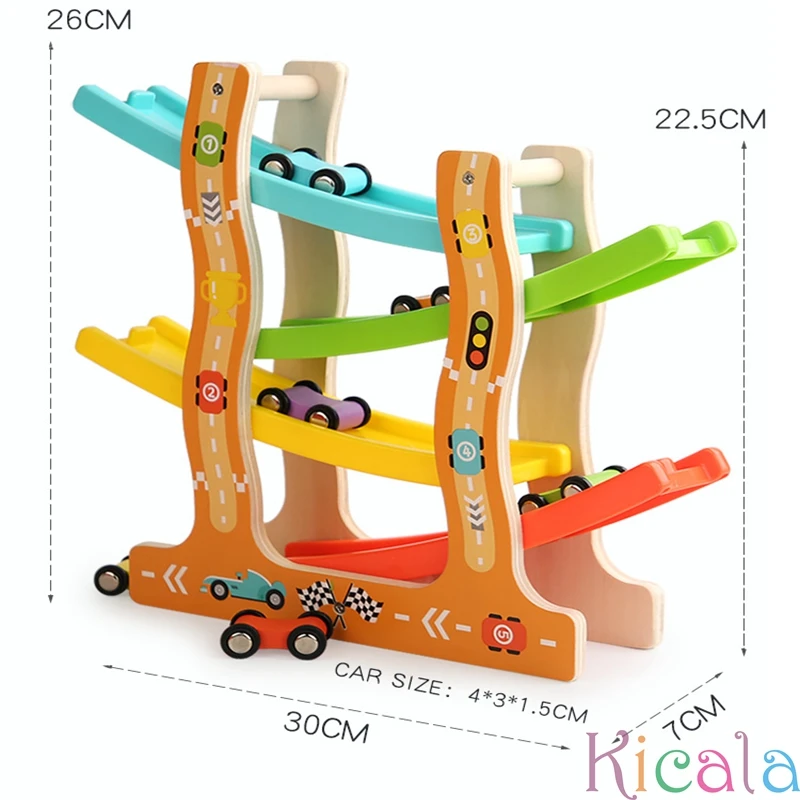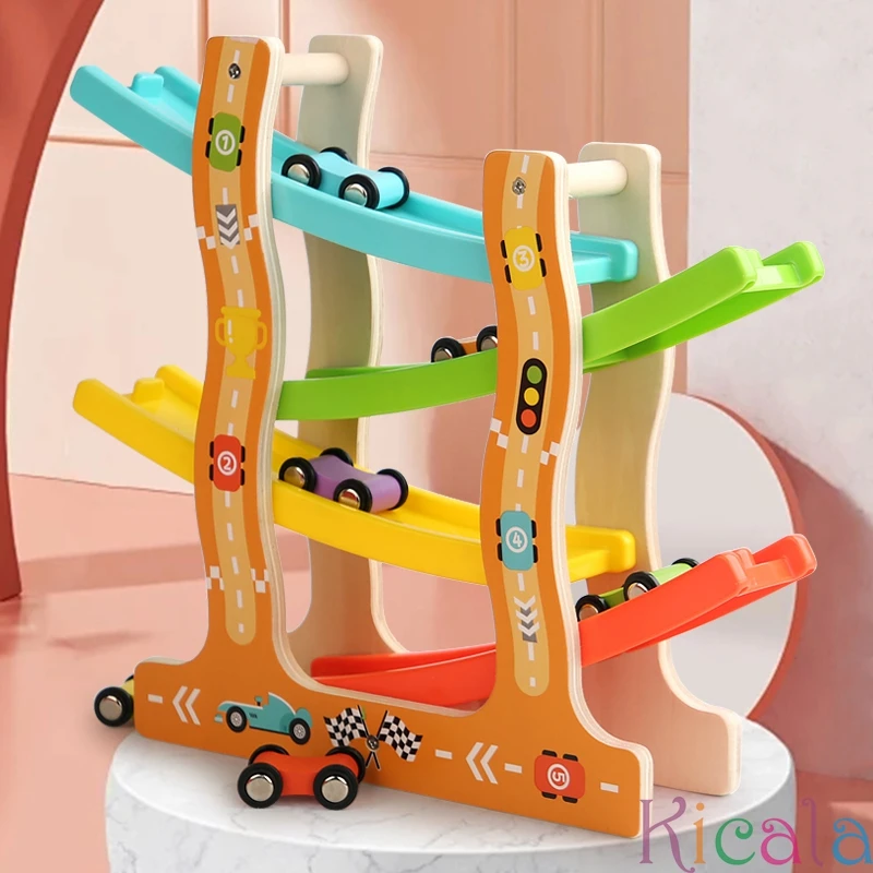 Wooden Racing Slide Cars Track Parking Lot Toys Gliding Ladder Vehicles DIY Education Xmas Birthday Gifts For Kids Boys